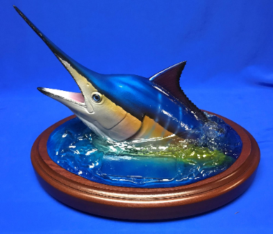 28" Blue Marlin 3/4 Mount on a Custom Water Sculpture