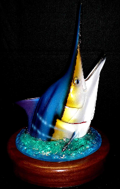 28" Blue Marlin 3/4 Mount on a Custom Water Sculpture