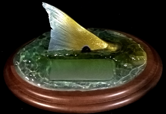 Redfish Tail on a Water Sculpture and Mahogany Base